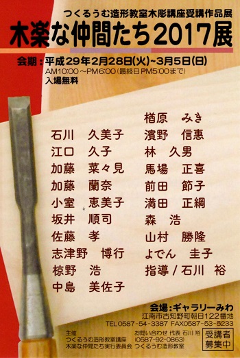 彫刻家・石川裕先生の20人の生徒さんの木彫り作品を出品。